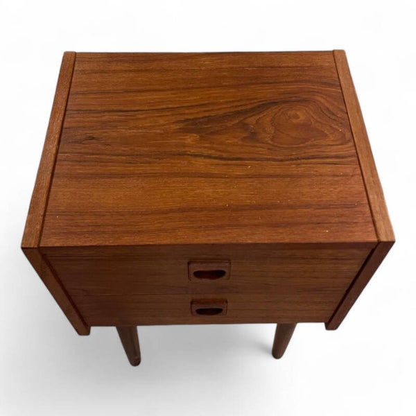 ๐ณ๐ฑ : Charmant klein tweeladenkastje van het Deense kwaliteitsmerk Brouer. Dit kastje van teakhout is uitgerust met twee soepel glijdende laden en rust op vier solide teakhouten poten. Perfect als bijzettafeltje of nachtkastje.