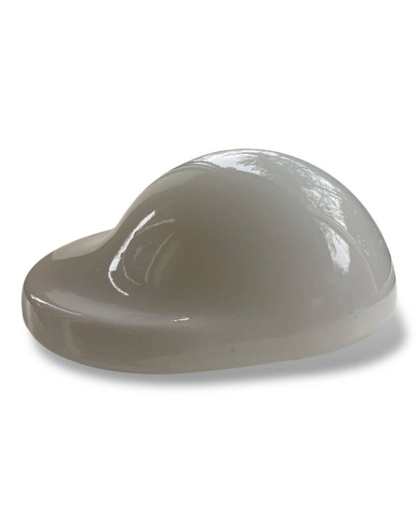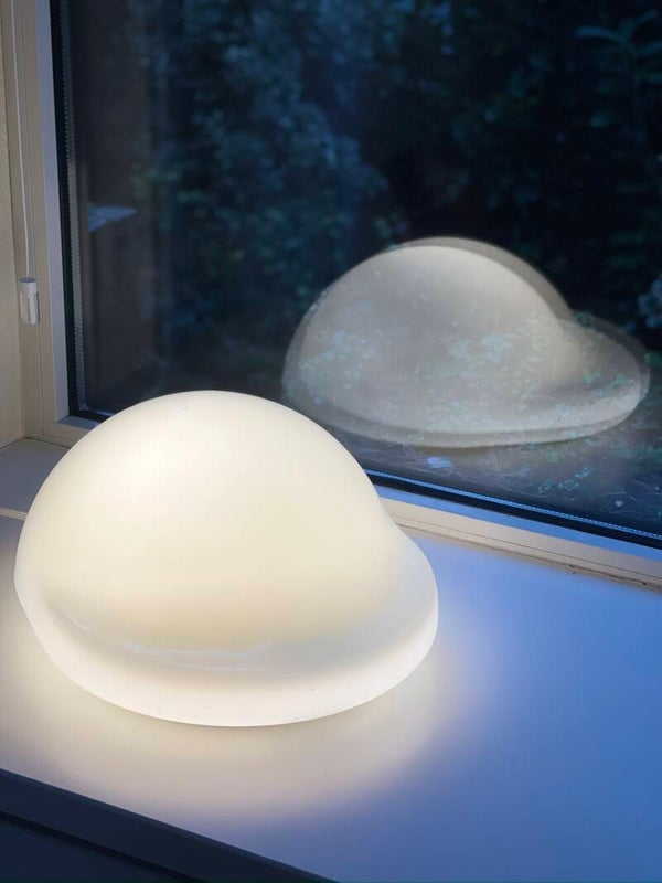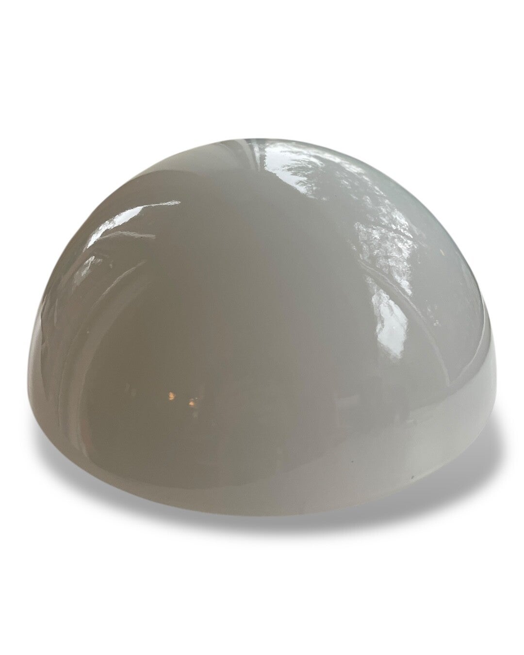Kenmerkend Space Age-design met een opaalglazen kap en witte kunststof basis.